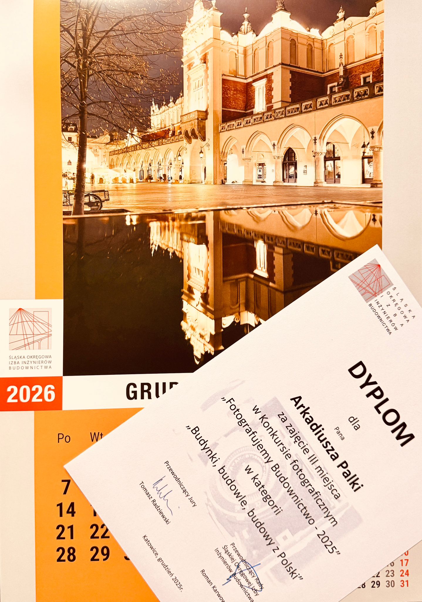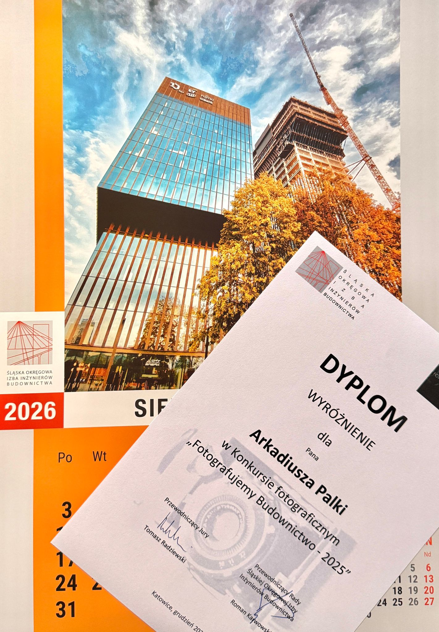 Jest nam niezmiernie miło poinformować, że aż cztery zdjęcia kolegi Arka zostały nagrodzone lub wyróżnione w konkursie “FOTOGRAFUJEMY BUDOWNICTWO” edycja 2025 organizowanym cyklicznie przez Śląską Okręgową Izbę Inżynierów Budownictwa.