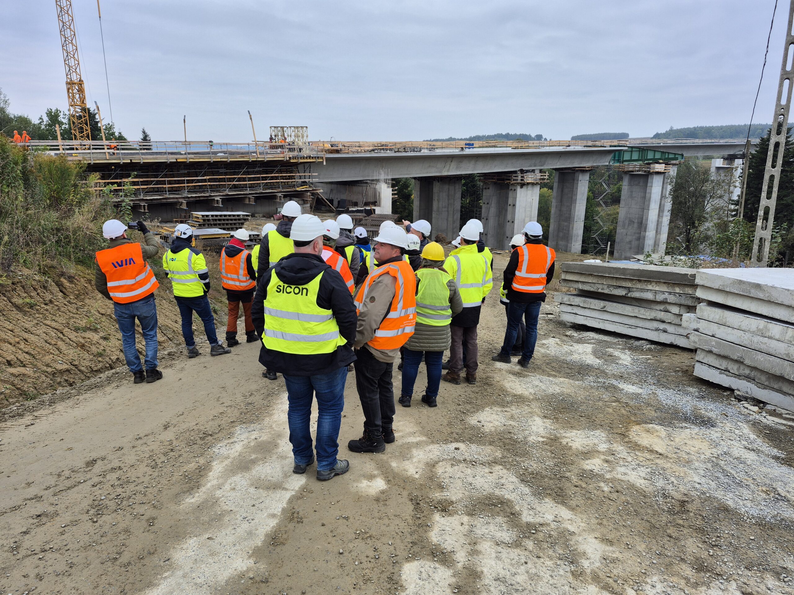 Pierwszy dzień naszej wycieczki, to wizyta na budowie, gdzie przywitał nas pan Paweł Trzaska kierownik budowy. Obecni byli również przedstawiciele biura projektów Autostrada II , którzy projektowali obiekty inżynierskie. Na początku  odbyło się obowiązkowe szkolenie BHP, a także zapoznanie zebranych z planem BiOZ budowy.