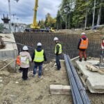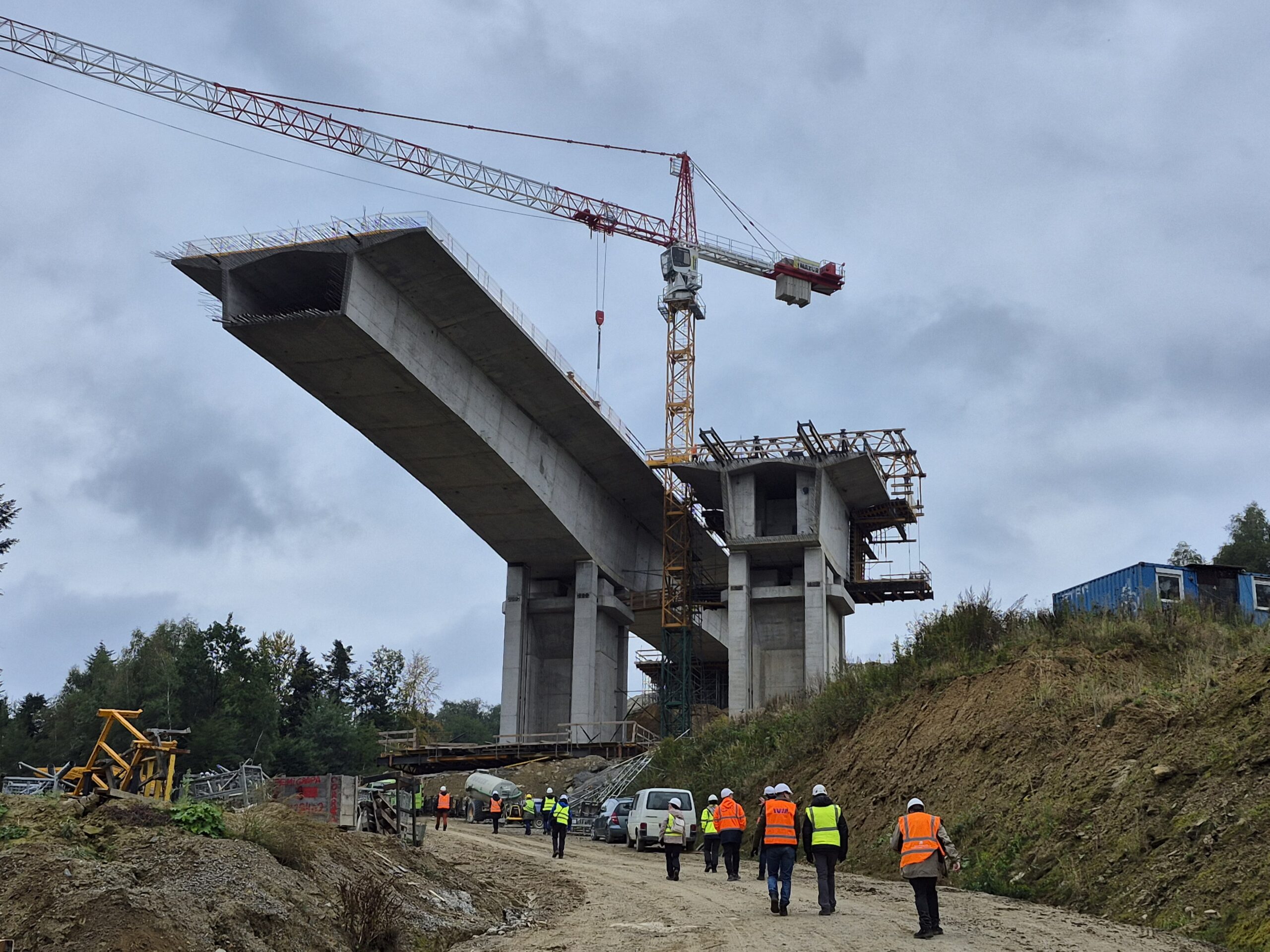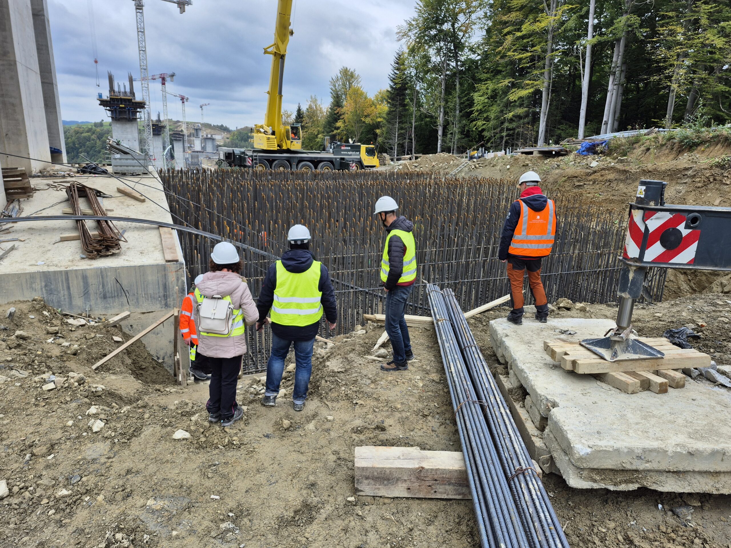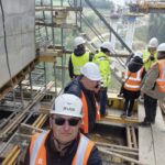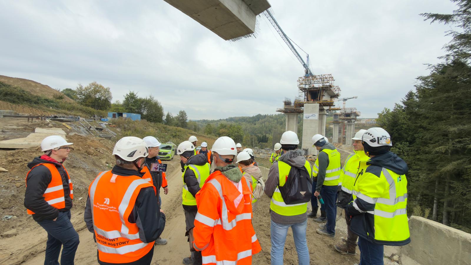 Po krótkim wstępie ruszyliśmy na zwiedzanie budowy, gdzie mieliśmy okazję zapoznać się z obiektami mostowymi realizowanymi zarówno metodą nasuwania podłużnego, jak i metodą nawisową.