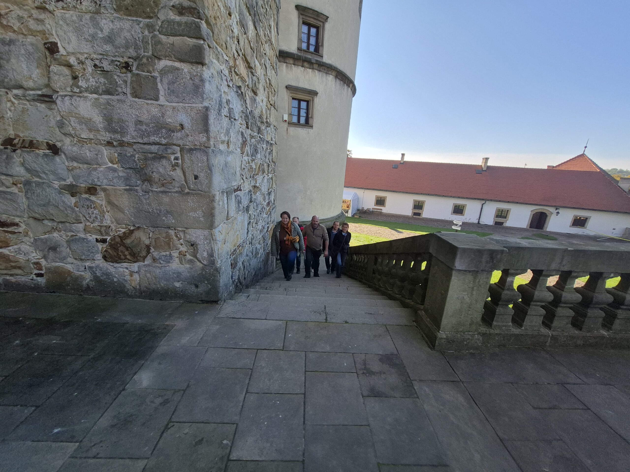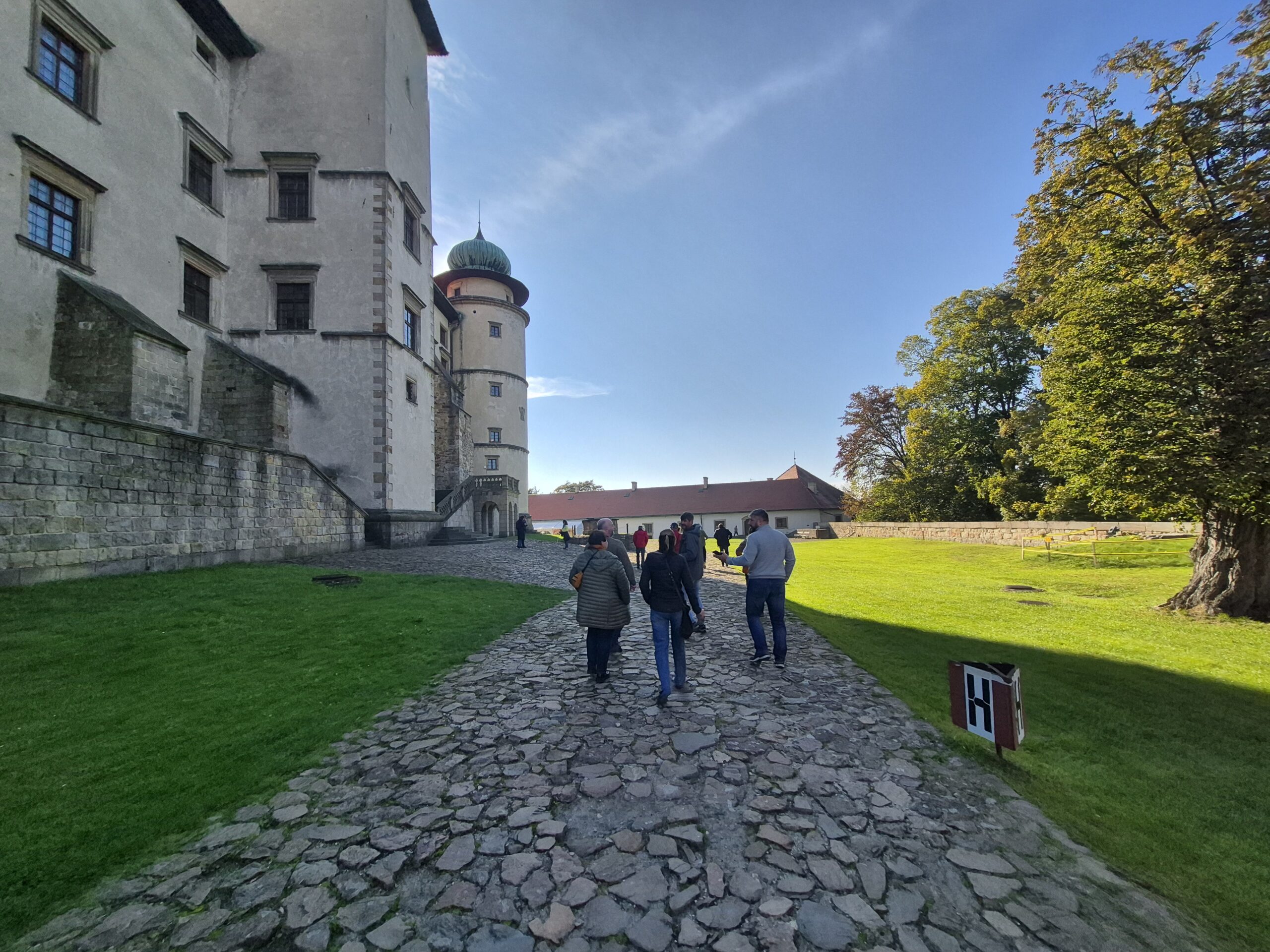 Dla uatrakcyjnienia zwiedzania, tak jak ma to już miejsce w wielu muzeach, zastosowano nowoczesne technologie. Przy użyciu gogli VR mogliśmy przenieść do czasów świetności zamku i odbyć po nim wirtualny spacer. Następnie już z przewodnikiem zwiedziliśmy zamek w realu i poznaliśmy całą historię zamku ora jego wzloty i upadki. Duże wrażenie zrobiły na nas również podziemne sale tortur wraz z różnymi przerażającymi przyrządami do wymuszania zeznań, oraz ciekawe opowieści przewodniczki związane z ich użyciem.