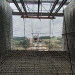 Pierwszym wizytowanym obiektem była estakada długości ponad 220m realizowana metodą nasuwania podłużnego, na której trwało właśnie betonowanie kolejnego segmentu. Mieliśmy okazję zapoznać się z technologią budowy obiektu ora wszystkimi problemami, jakie wymagały rozwiązania w trakcie realizacji.