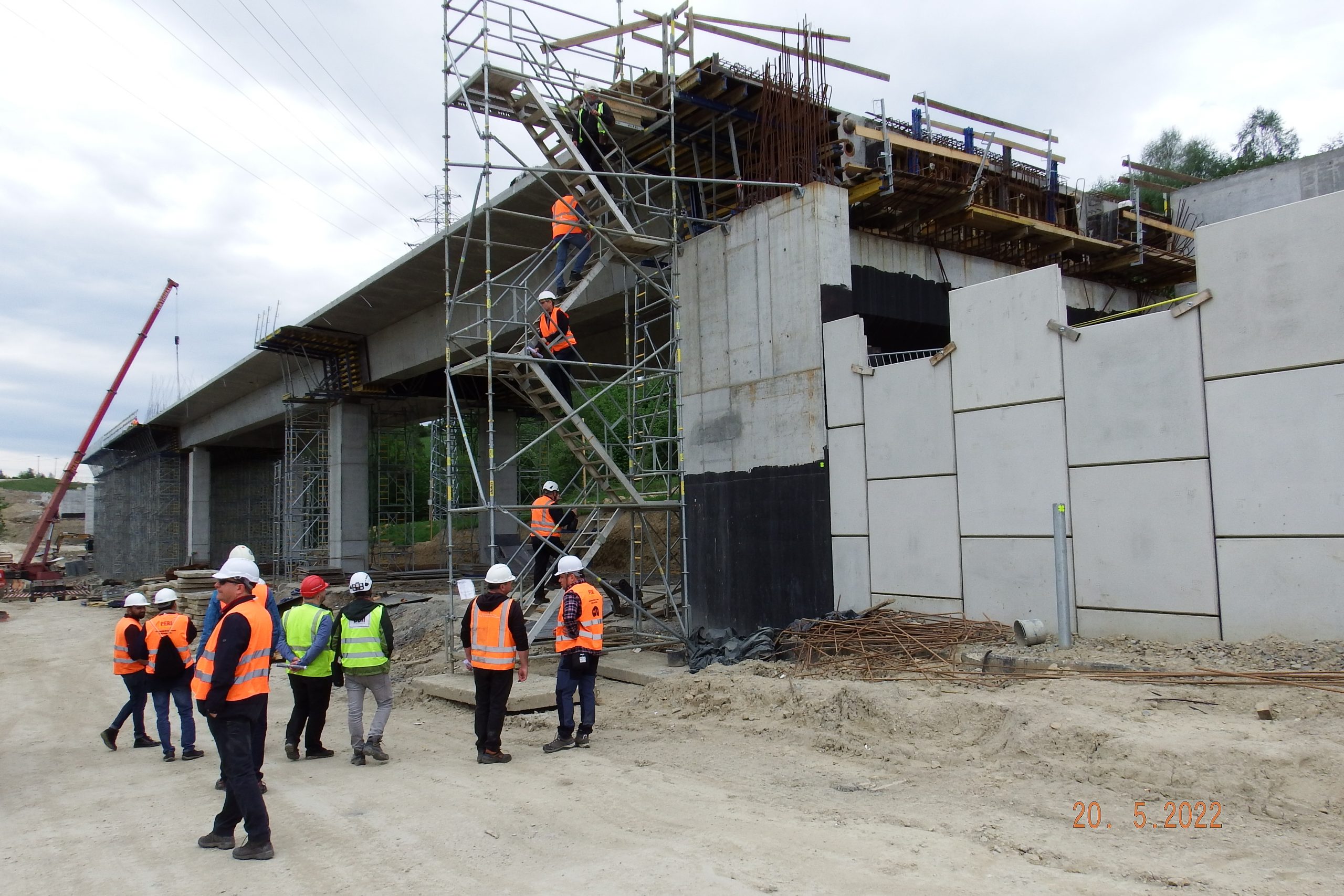 W dniu 20.05.2022 r. w ramach Śląskiej Szkoły Mostowej odbyła się wycieczka techniczna na budowę drogi ekspresowej S1 (odcinek Przybędza-Milówka). Jest to tzw. obejście Węgierskiej Górki, której mieszkańcy z niecierpliwością czekają na dokończenie robót. Wykonawcą tego odcinka jest konsorcjum firm MIRBUD S.A., KOBYLARNIA S.A. i INTERBUDOMONTAŻ z Ukrainy. W trakcie wycieczki zobaczyliśmy, jak postępują prace przy budowie dwóch nitek tunelu pod masywem Białożyński Groń o długości prawie jednego kilometra. Oglądnęliśmy też budowę estakady EST-5 z betonu sprężonego długości ponad 200 m.