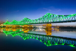 „Zdjęcie przedstawia Most im. Marszałka Edwarda Śmigłego-Rydza we Włocławku. Most łączy lewobrzeżną i prawobrzeżną część Włocławka, przebiegając nad rzeką Wisłą. Został zbudowany w 1937 roku i ma 623 metry długości. Jest to most kratownicowy, jeden z niewielu tego typu w Polsce. Most był wielokrotnie niszczony i odbudowywany w czasie II wojny światowej. Został sfotografowany przy zastosowaniu techniki “zoomowania”, czyli zmiany ogniskowej w trakcie wyzwalania migawki. Stąd efektowny, geometryczny wzór rozprowadzenia linii świetlnych.”