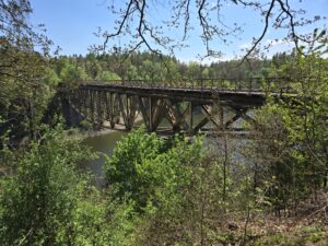 Most kolejowy nad rzeką Bóbr. Most kratownicowy, łukowy z jazdą dołem nad rzeką Bóbr w km 14+940 lk283 tzw. Kolej Doliny Bobru (odcinek nieużytkowany – ruch zawieszony od 12.2016 r.) Most znajduje się w bezpośrednim sąsiedztwie st. Nielesewo, która pojawiła się w początkowych scenach kultowej komedii “Jak rozpętałem drugą wojnę światową”
