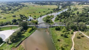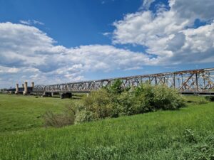 „Zdjęcie nr 7 przedstawia czteroprzęsłowy, żelbetowy most przez rzekę Pilicę w Białobrzegach. Zdjęcie wykonane podczas wakacyjnej wyprawy do Krakowa.