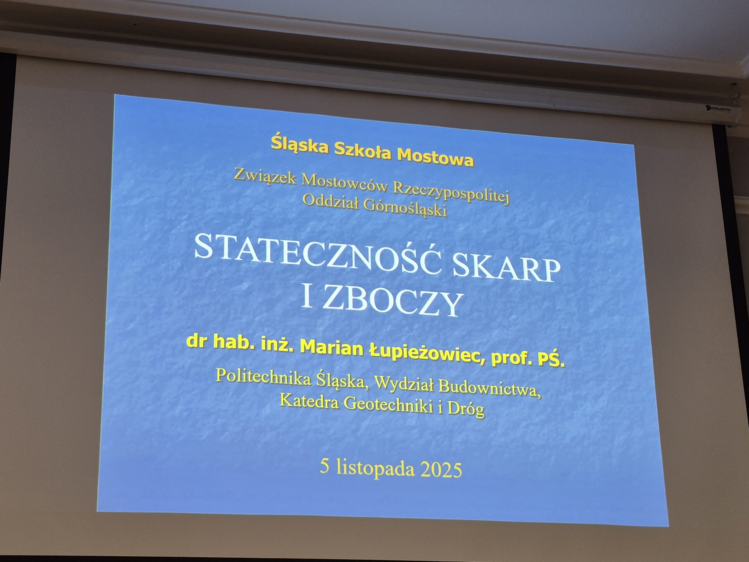 W dniu 5 listopada 2025 roku Pan dr hab. inż. Marian Łupieżowiec, prof. PŚ, wygłosił dla nas wykład pt. „Stateczność skarp i zboczy”.